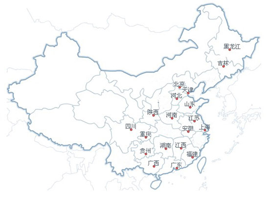 北京、天津、鄭州、青島、西安、重慶、成都、長(zhǎng)沙、南京、 南寧、哈爾濱、 廣州、石家莊等。